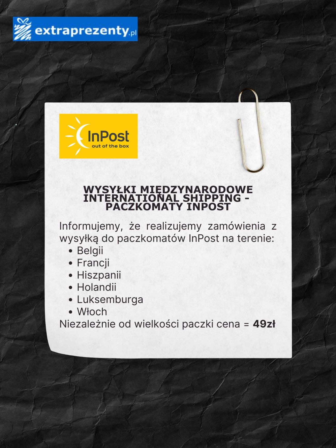 - Francja = od 69,90zł (nie licząc w/w paczkomatów InPost)