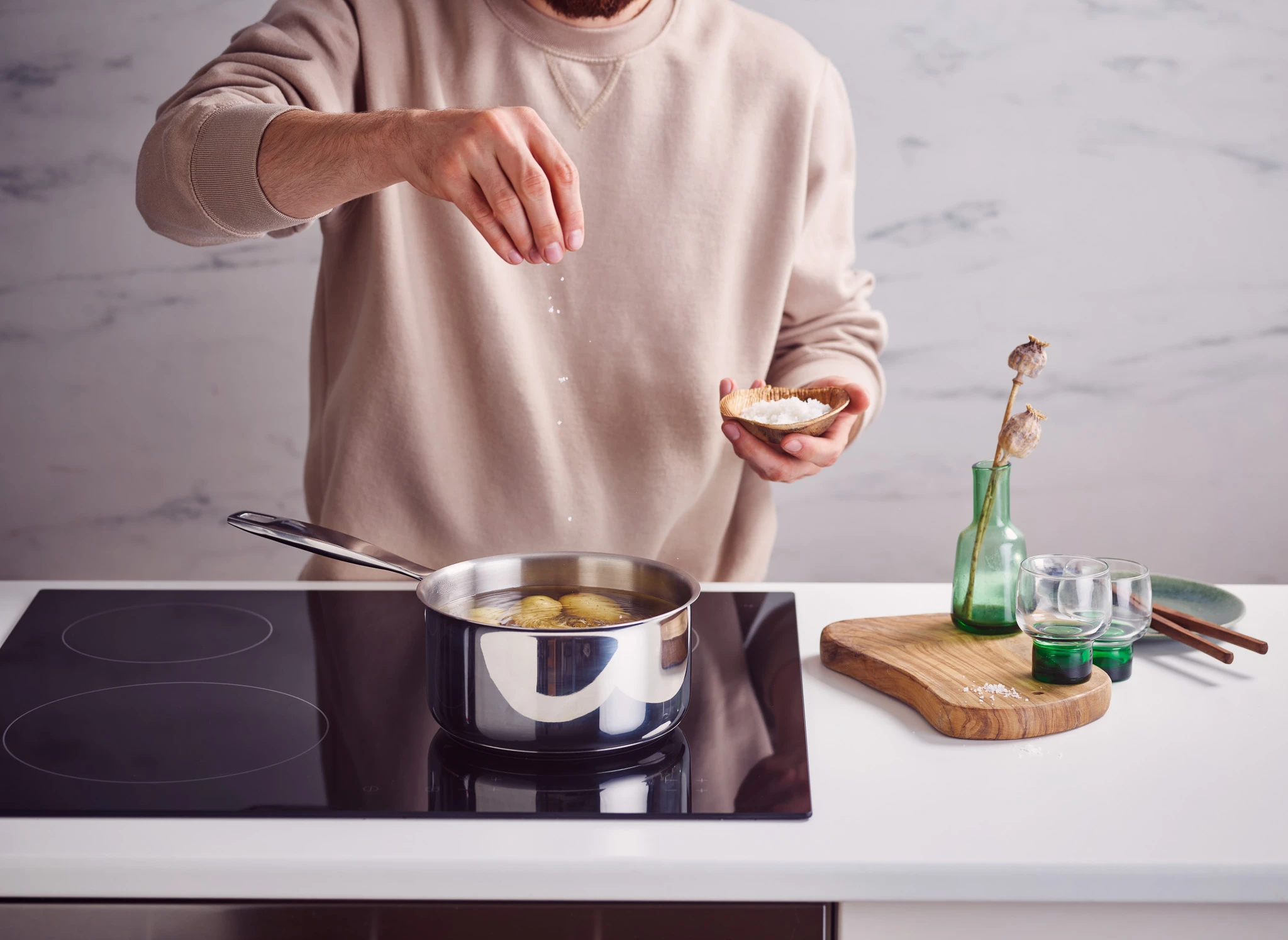 - Zamknięta 3-warstwowa podstawa eliminuje gorące punkty i zapewnia równomierne gotowanie potraw.