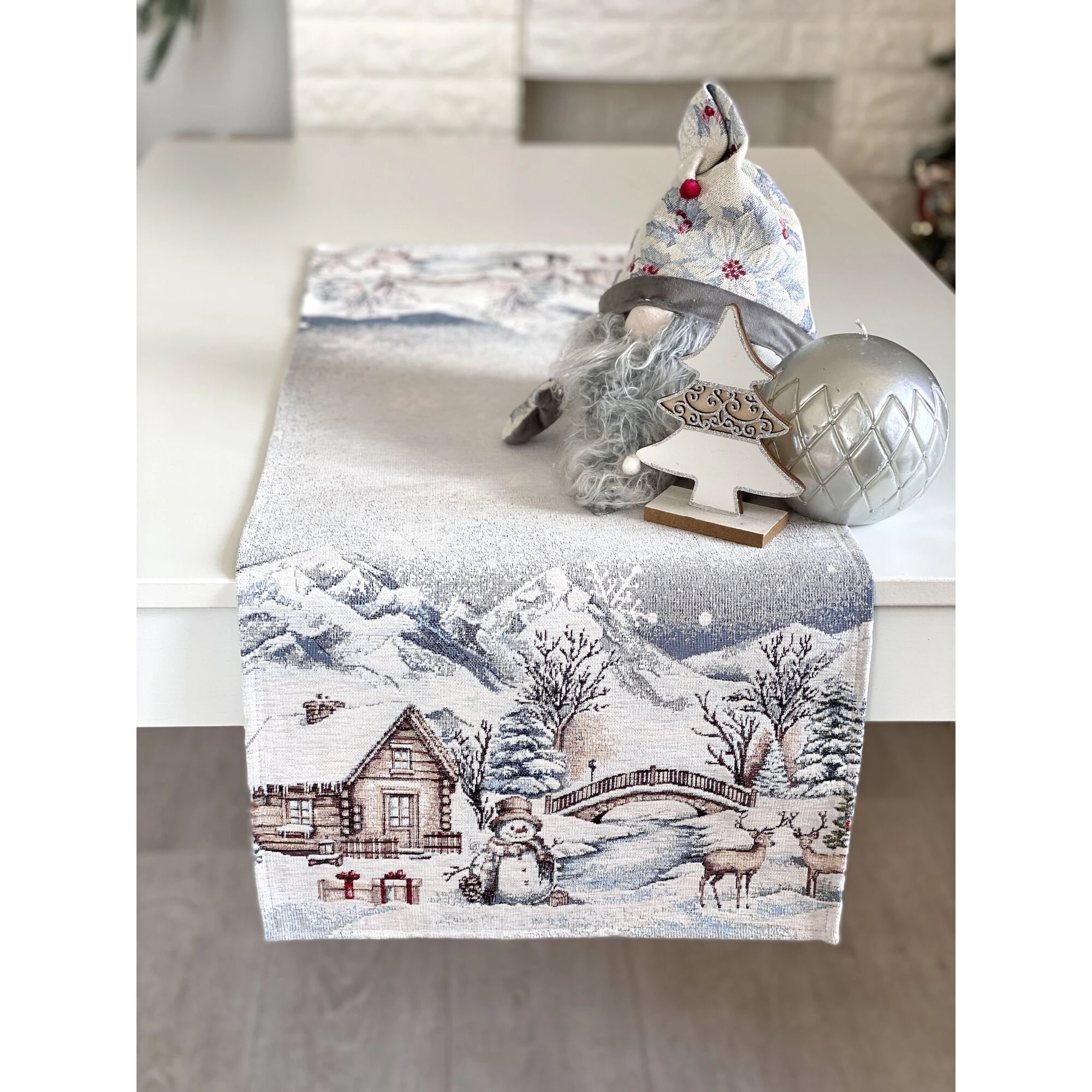 Bieżnik bożonarodzeniowy (o wymiarach = około 37x100cm) z tkaniny gobelinowej tkany maszynowo (to nie nadruk!!!) to elegancki i praktyczny sposób, aby w kilka chwil nadać stołowi wyjątkowy, świąteczny charakter. Rozłożony na stole lub ławie podkreśla atmosferę Świąt i sprawia, że nawet najprostsza aranżacja nabiera odświętnego blasku. To ten element dekoracji, który warto mieć choćby na kilka dni w roku – bo właśnie wtedy tworzy niezastąpiony klimat.