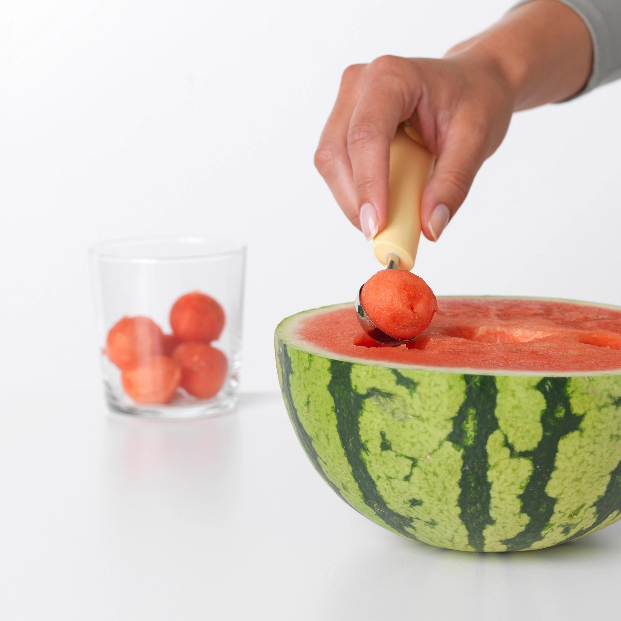 - Wszechstronność – idealna do formowania kul z melona, wydrążania ziemniaków, pomidorów czy tworzenia dekoracyjnych porcji.