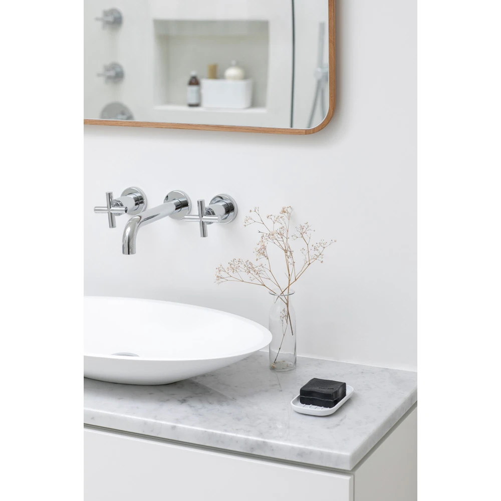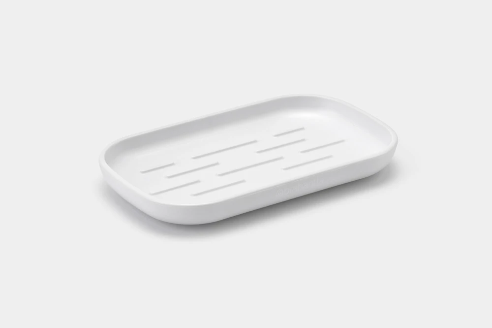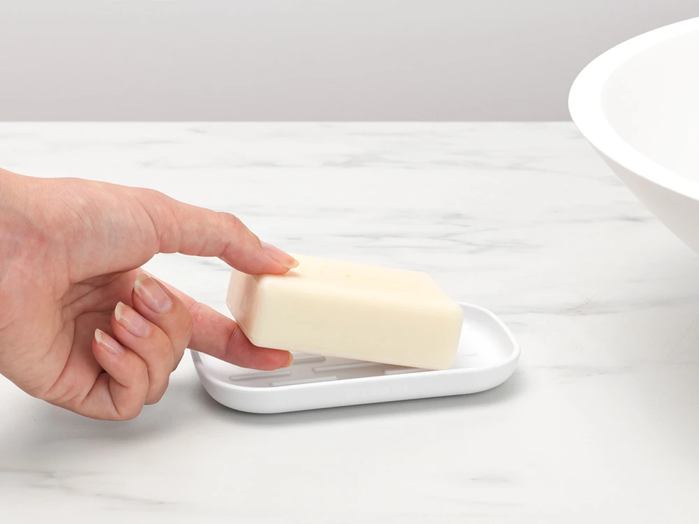 Mydelniczka ReNew marki Brabantia posiada prążkowane podłoże, zapobiegające namakaniu mydła, ponieważ ma odpowiednią wentylację i szybciej schnie. Jest wystarczająco duża, by pomieścić pełnowymiarową kostkę mydła. Dzięki antypoślizgowym nóżkom utrzymuje stabilność. Idealna do łazienki, toalety i kuchni. Wykonana z materiałów odpornych na korozję. 5 lat gwarancji
