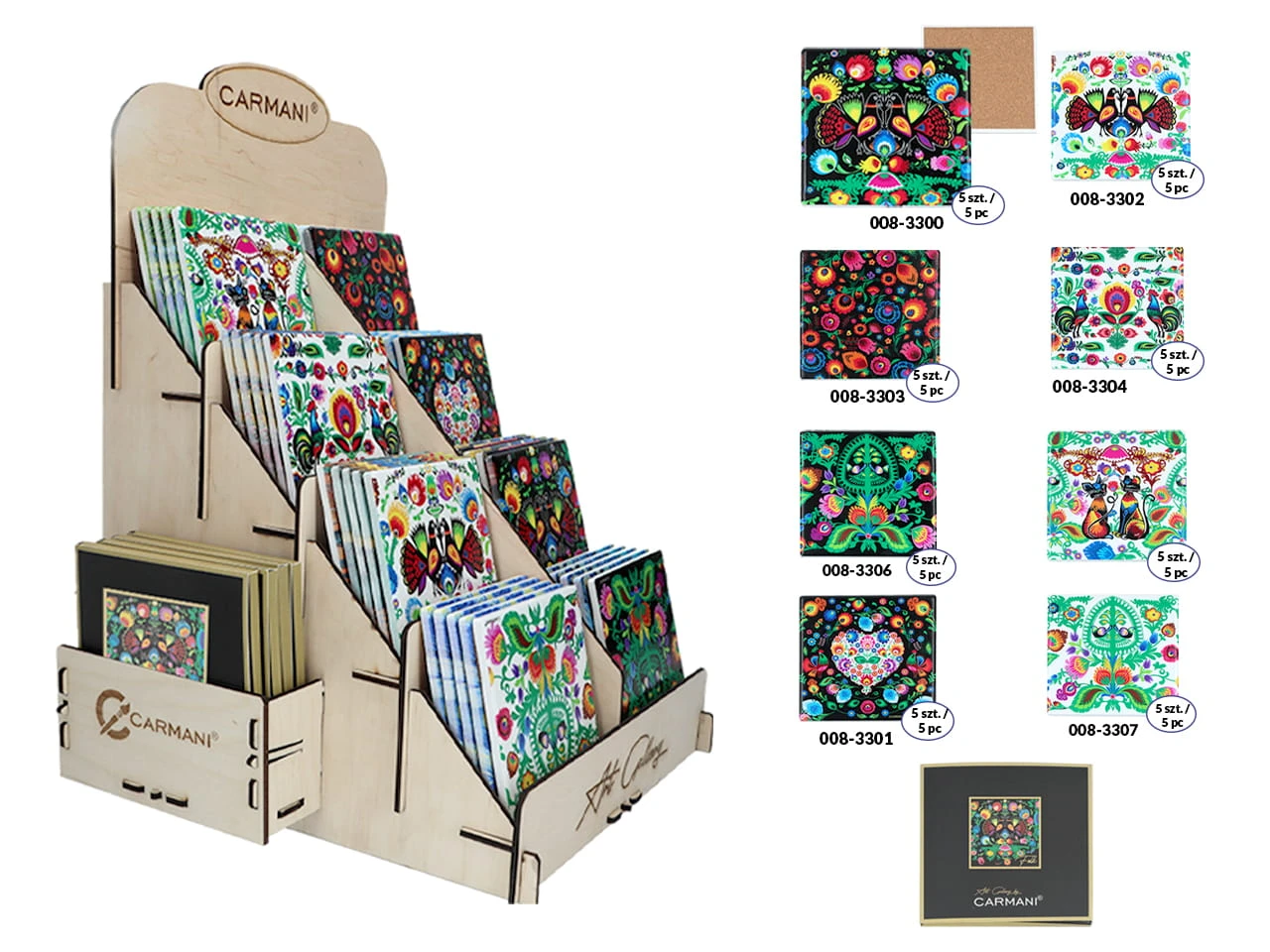 Pod marką Carmani odnajdziecie zawsze produkty wysokiej jakości jak np. filiżanki i kubki porcelanowe, serwisy oraz komplety porcelanowe, figurki, szkło i sztućce itp., z popularnymi, znanymi i cenionymi motywami jak m.in.: kolekcje malarstwa: Vincenta van Gogha, Moneta, Alfonsa Muchy, Gustava Klimta czy coraz bardziej popularnego - Modigliani'ego