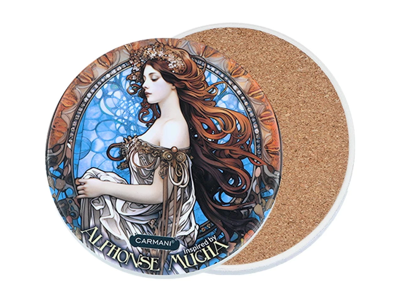 Carmani, podkładka ceramiczna pod kubek/szklankę Inspirowana malarstwem ALFONSA MUCHA