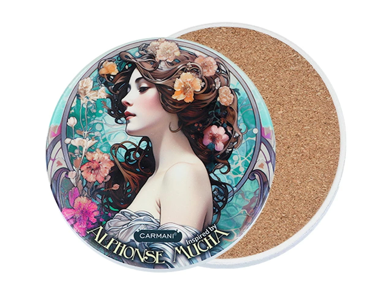 Carmani, podkładka ceramiczna pod kubek/szklankę Inspirowana malarstwem ALFONSA MUCHA