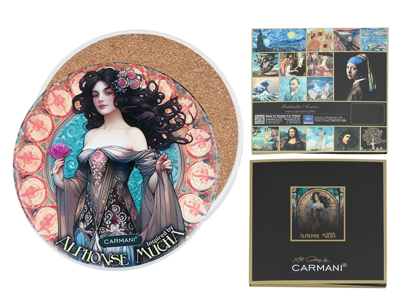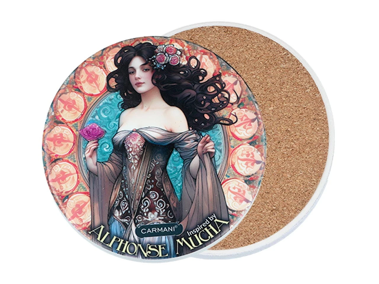 Carmani, podkładka ceramiczna pod kubek/szklankę Inspirowana malarstwem ALFONSA MUCHA
