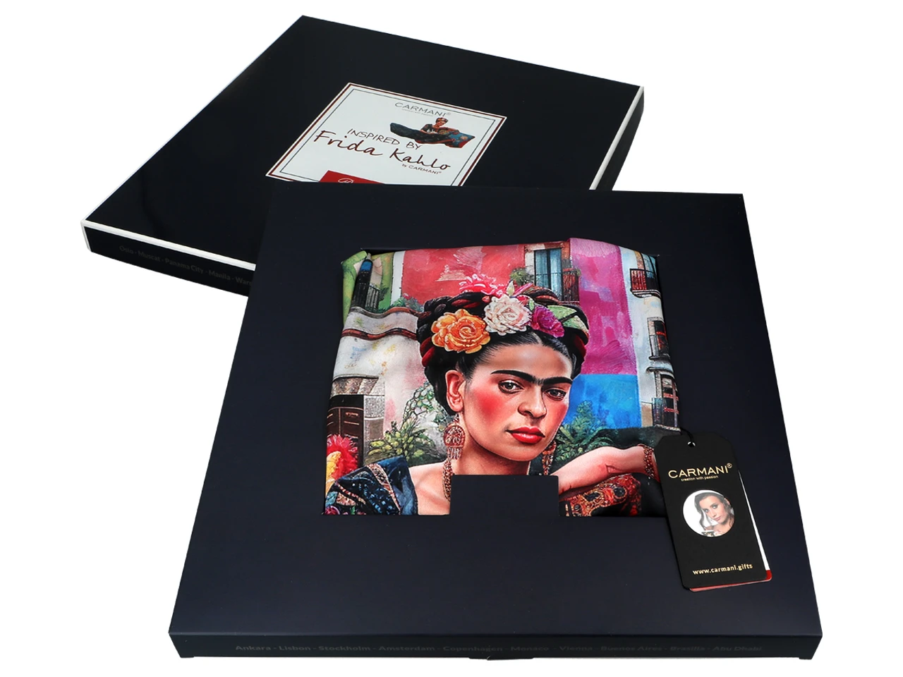 Ten niezwykły szal Carmani inspirowany twórczością Fridy Kahlo to nie tylko modny dodatek, ale prawdziwa deklaracja odwagi i artystycznej pasji. Dzięki zastosowaniu innowacyjnej tkaniny tamina szlachetna(połączenie w odpowiednich proporcjach poliesteru i satyny co powoduje, że produkt jest miękki i przyjemny w dotyku) wyróżnia się wyjątkowo wyrazistymi, nasyconymi kolorami oraz jedwabistym, przyjemnym w dotyku wykończeniem. Perfekcyjnie odwzorowane motywy zachowują trwałość nawet przy częstym użytkowaniu, zapewniając Ci komfort i unikalny styl na co dzień.