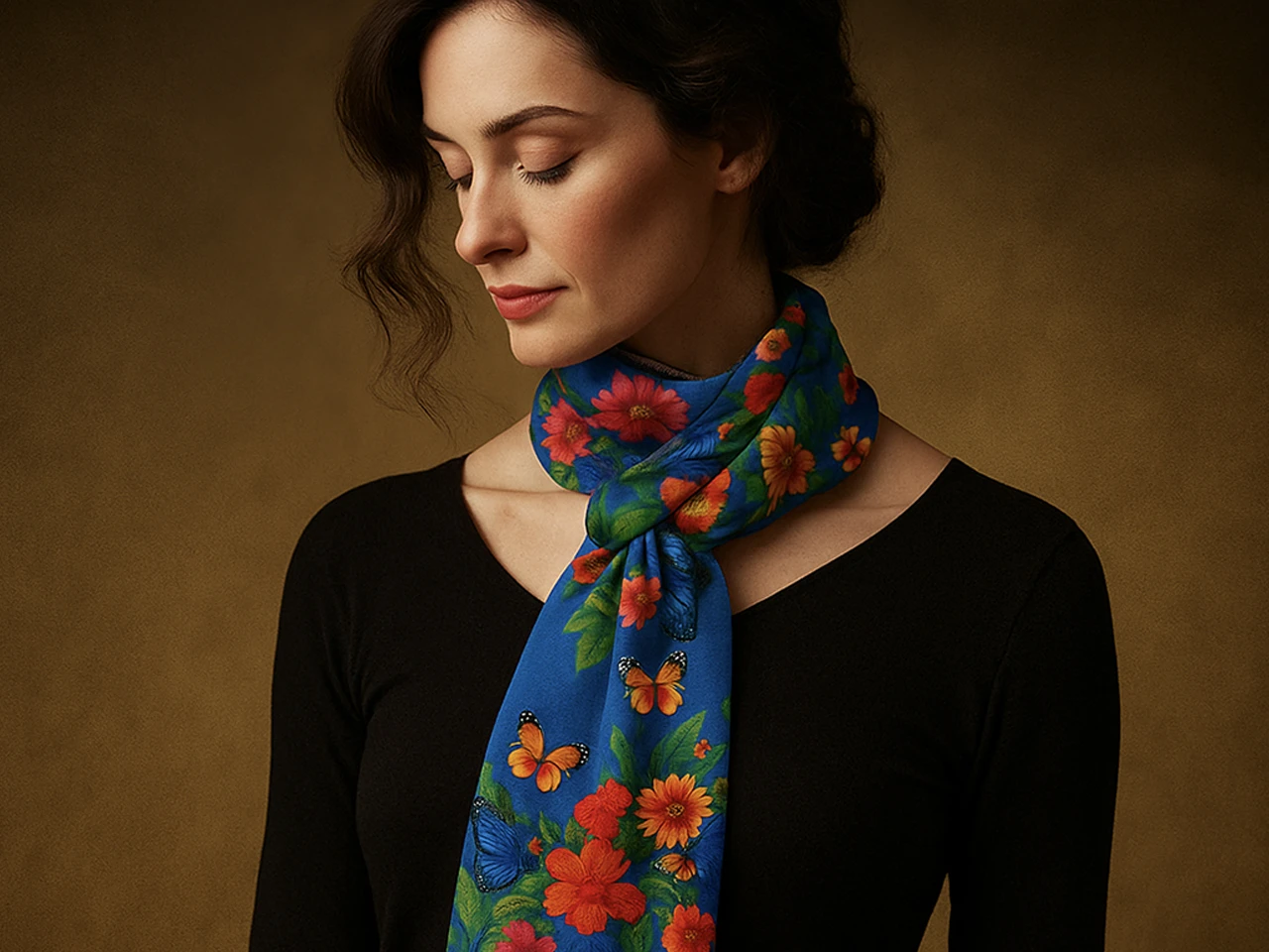 Ten niezwykły szal Carmani inspirowany twórczością Fridy Kahlo to nie tylko modny dodatek, ale prawdziwa deklaracja odwagi i artystycznej pasji. Dzięki zastosowaniu innowacyjnej tkaniny tamina szlachetna(połączenie w odpowiednich proporcjach poliesteru i satyny co powoduje, że produkt jest miękki i przyjemny w dotyku) wyróżnia się wyjątkowo wyrazistymi, nasyconymi kolorami oraz jedwabistym, przyjemnym w dotyku wykończeniem. Perfekcyjnie odwzorowane motywy zachowują trwałość nawet przy częstym użytkowaniu, zapewniając Ci komfort i unikalny styl na co dzień.