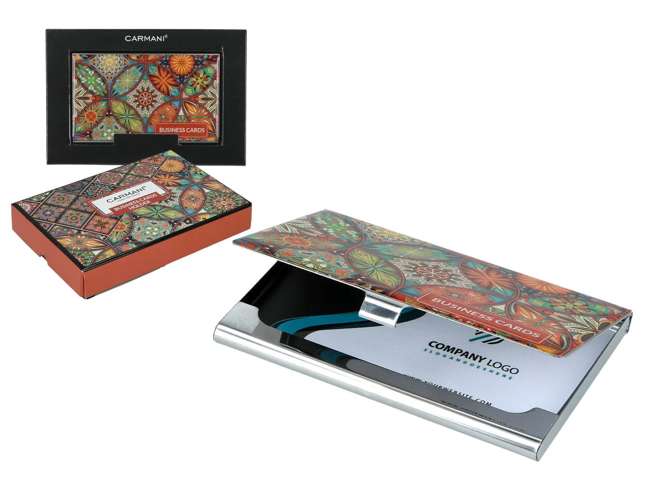 Elegancki wizytownik Carmani z piękną dekoracją, to efektowny dodatek nie tylko dla osób związanych z biznesem, ale dla każdego z nas, bo wizytówki można komuś dawać, ale i od kogoś brać (wtedy będzie to miejsce na ich przechowywanie, bo każdy z nas otrzymał kiedyś wizytówkę ale nie zawsze wiadomo jak je przechowywać, żeby się nie zniszczyły.