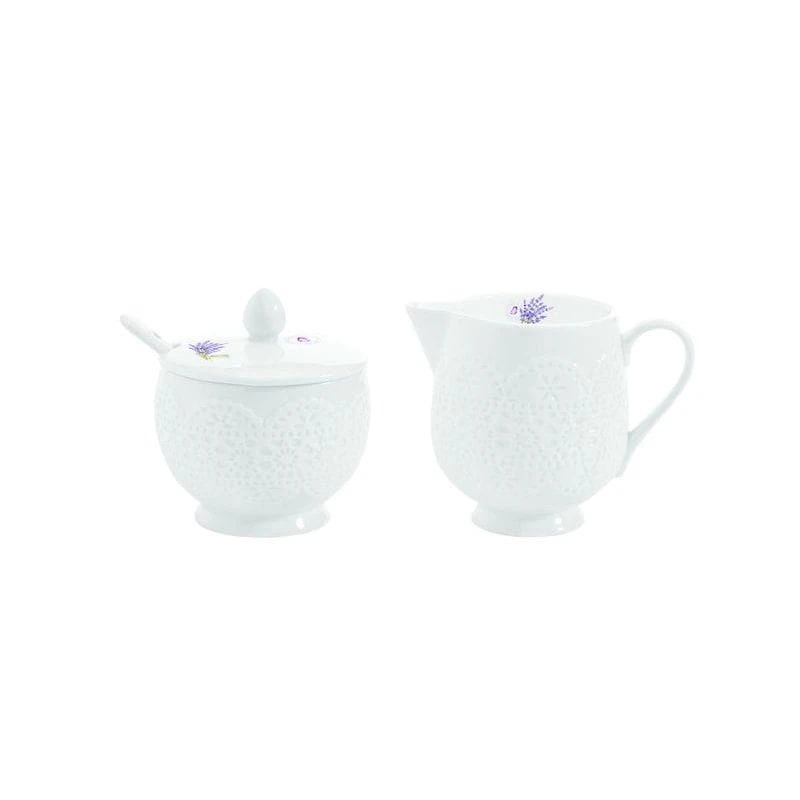 Cukiernica z łyżeczką i mlecznik do kawy