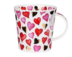DUNOON, kubek CAIRNGORM - Love Hearts Pink/Red, serca (22k złoto)