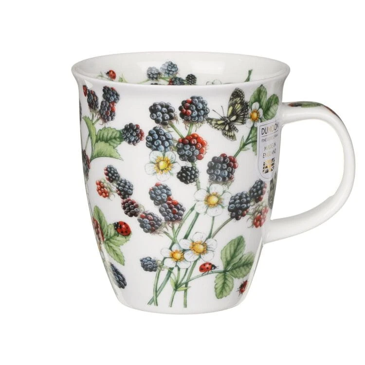O pięknym, owocowym motywie Wild Fruits Blackberry kubek Nevis przedstawiającym bardzo realistycznie gałązki jeżyn(kwiaty i owoce) po których przechadzają się małe biedronki, a wśród nich latają motyle.