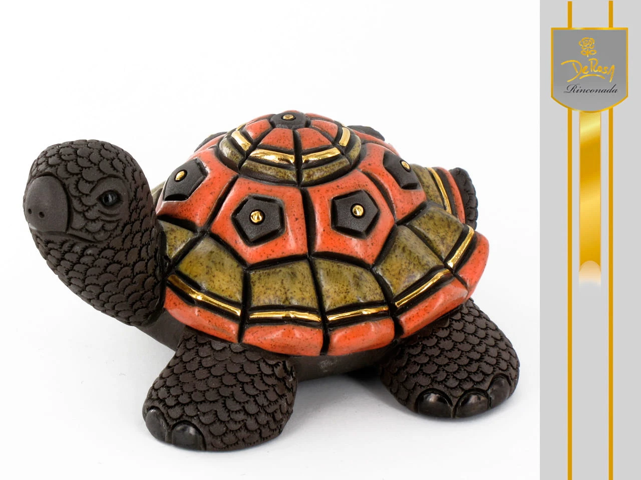 Urugwajska figurka "Turtle"(żółw) z ekskluzywnej, limitowanej ilością stworzonych figurek kolekcji "Gres" - całkowicie ręcznie wykonanych z naturalnego gresu w ciemnografitowym kolorze i delikatnie malowanych oraz złoconych z niezwykłą dbałością o szczegóły, dzięki czemu każda figurka ma niepowtarzalny i jedyny w swoim rodzaju, bardzo miły dla oka wygląd.