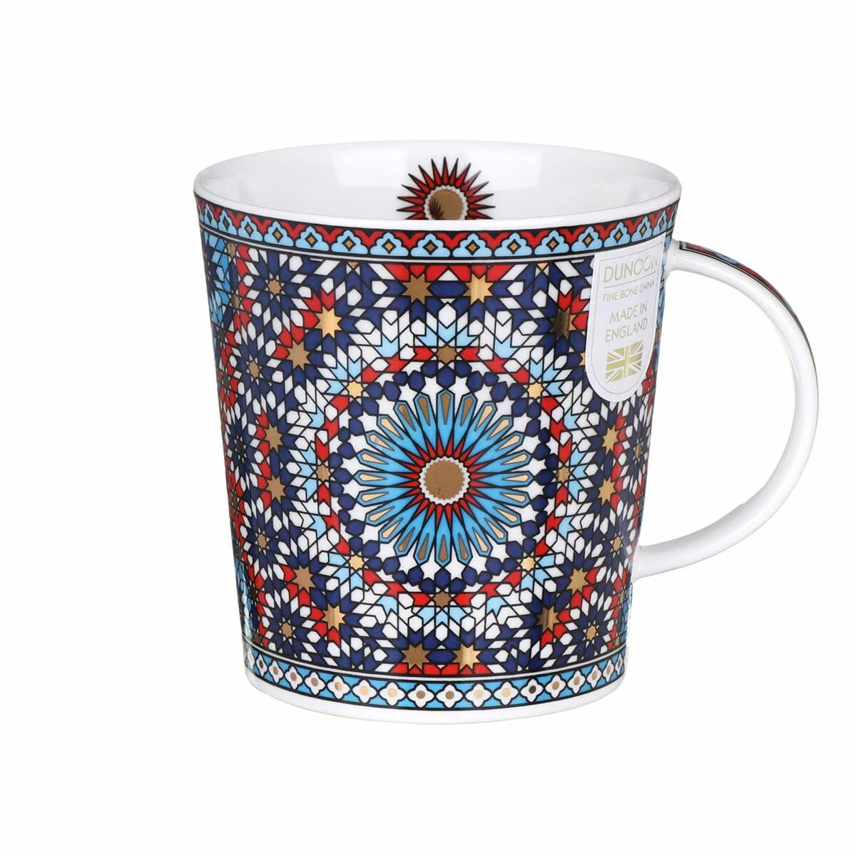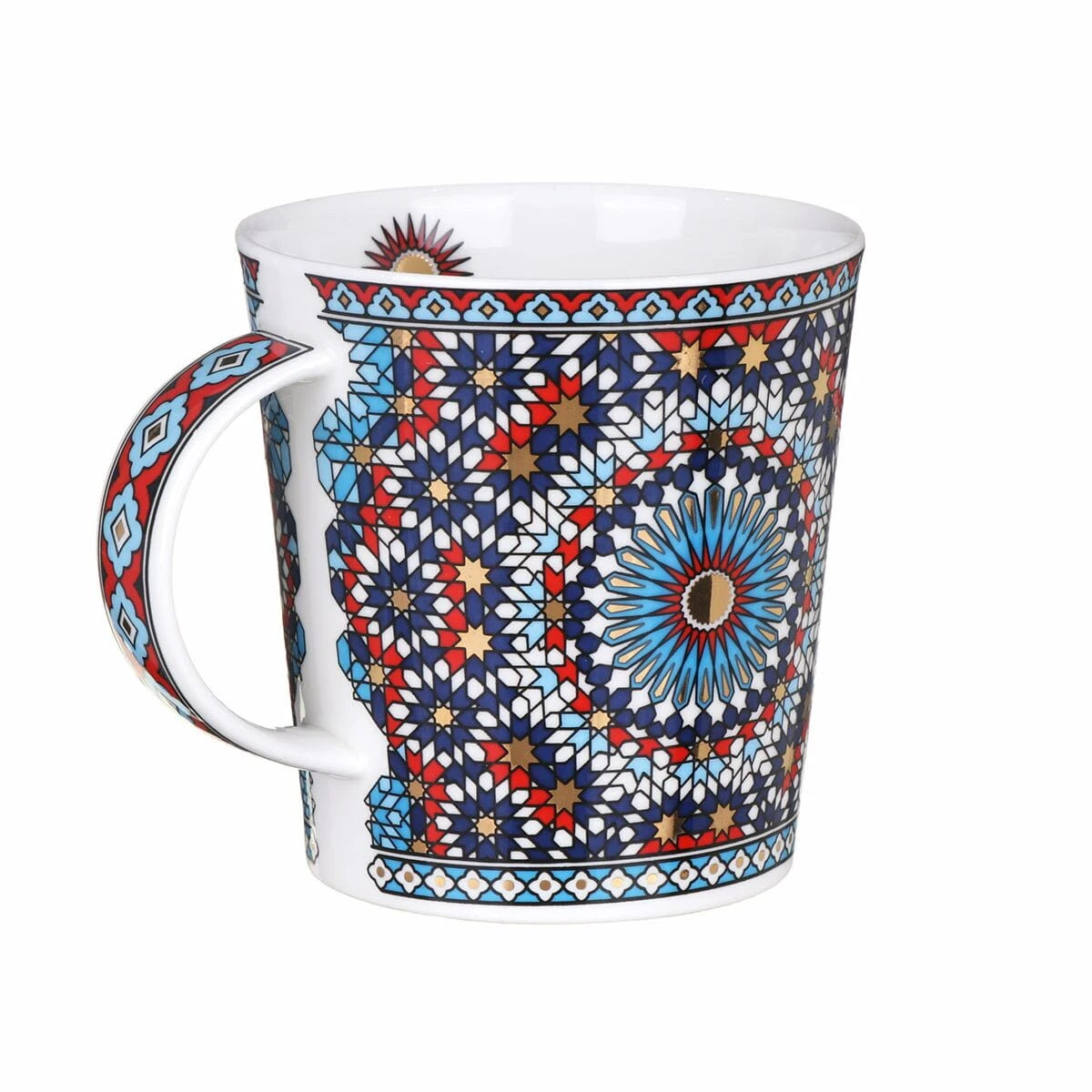Kubek Tangier Red o bardzo ładnym motywie ze zdobieniami wykonanymi 22k złotem inspirowanym marokańskimi tekstyliami, a naniesionym na kubku wchodzącym w skład kolekcji kubków Lomond charakteryzującymi się elegancką prostotą, wygodą i ergonomią kształtu.