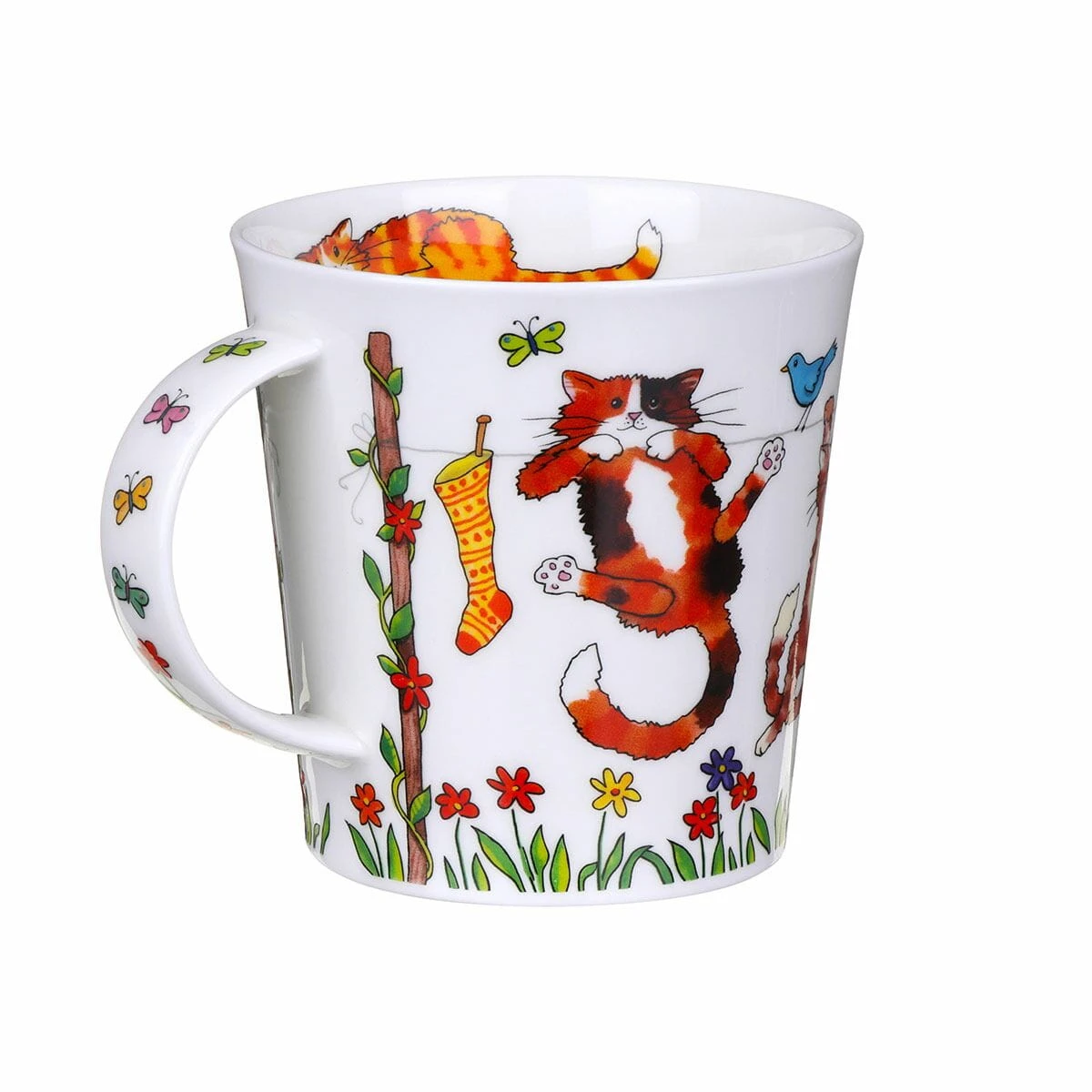 Kubek Cairngorm - Hanging Out Cat z humorystycznym, kolorowym motywem wywołującym uśmiech na twarzy przedstawiającym psotne kociaki stworzony przez przez angielską ilustratorkę-graficzkę Kate Mawdsley.