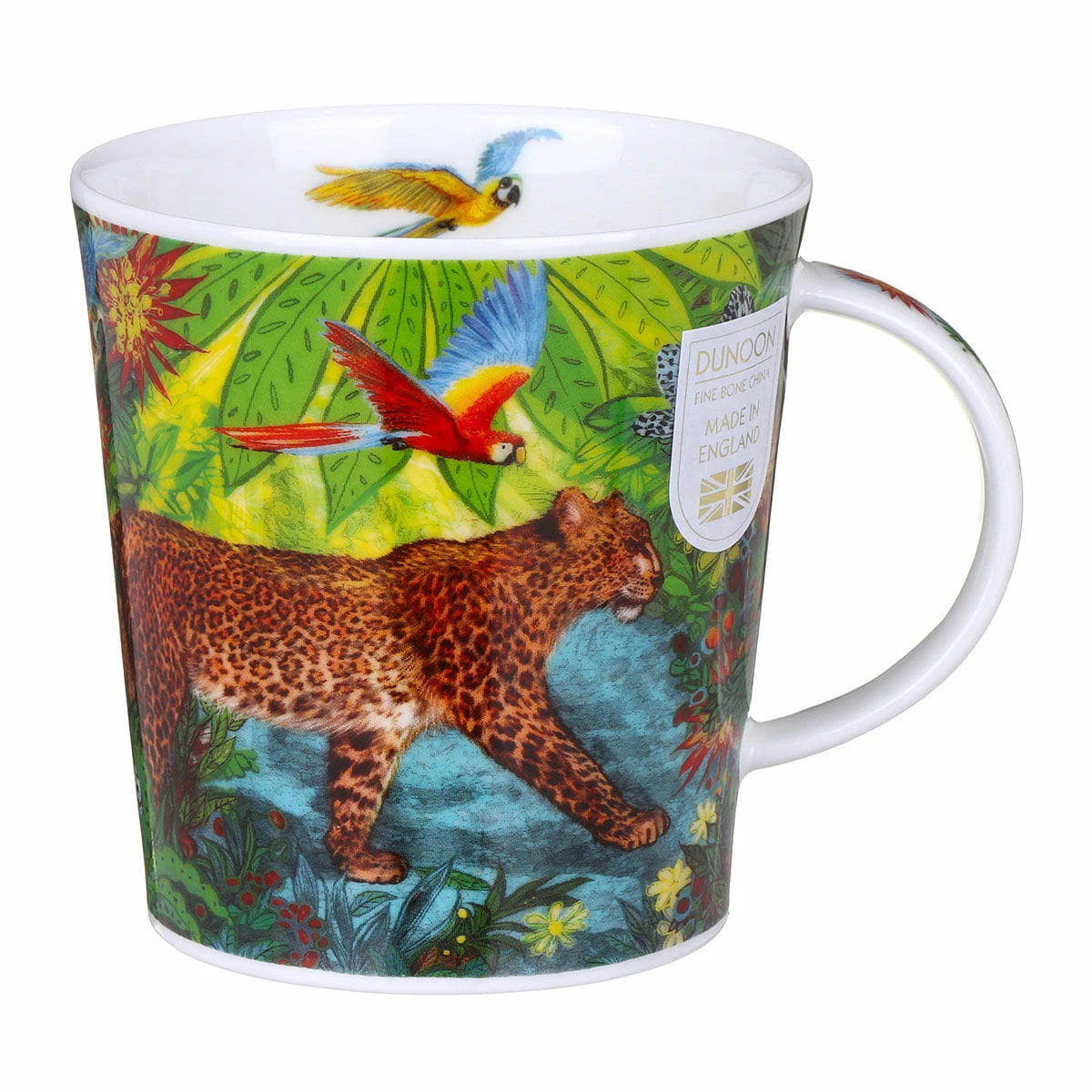Mieszkańcy bujnego, tropikalnego lasu na jego tle to oryginalny motyw kubka Lomond - Utopia stworzony przez Patricia MacCarthy, m.in.: ilustratorkę i autorkę książek dla dzieci.