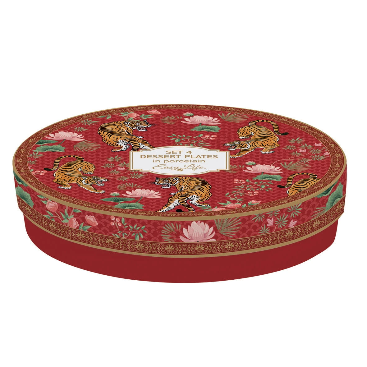 Cztery talerzyki deserowe 19cm jako komplet wchodzący w skład kolekcji Easy Design/Nuova R2S - Bengala o oryginalnym motywie inspirowanym materiałami tekstylnymi z regionu Bengala położonego w południowej Azji na terytoriach Bangladeszu i Indii, na obszarze jednym z najgęściej zaludnionych na Świecie i jednocześnie z bogatą historią kulturową.ticelli Brusati w regionie Lombardii, kilkanaście kilometrów na północny zachód od Brescii.