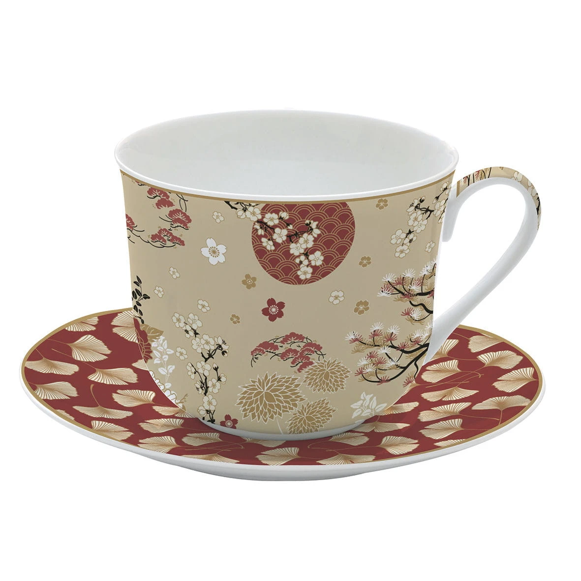 Duża(około 400ml), tzw. śniadaniowa filiżanka ze spodkiem Atmosphere - Kimono o oryginalnym motywie inspirowanym kulturą japońską.