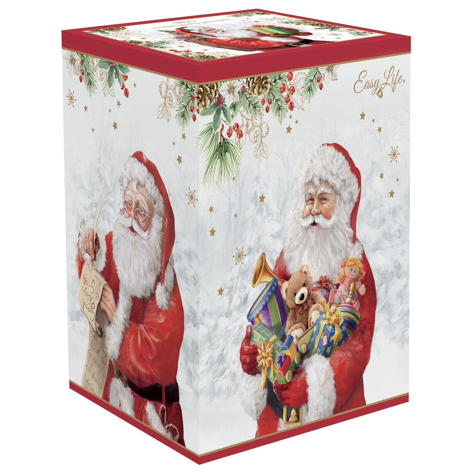 Duży, ale dość poręczny pomimo swojej wagi kubek 600ml o świątecznym motywie Santa is Coming to produkt wchodzący w skład dużej/szerokiej elementowo kolekcji Christmas in Easy Life(firmowana właśnie włoską marką "Easy Life/Nuova R2S") wykonany z dobrej jakości, połyskującej porcelany typu "Fine China"(niekostna, grubsza od standardowej porcelany kostnej).