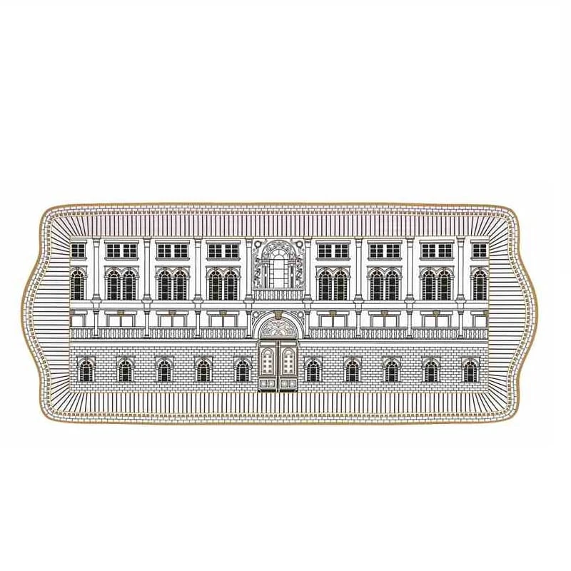 Wykonany ze średniej grubości porcelany prostokątny półmisek wchodzący w skład kolekcji Palazzo o bardzo nietypowym, oryginalnym motywie.