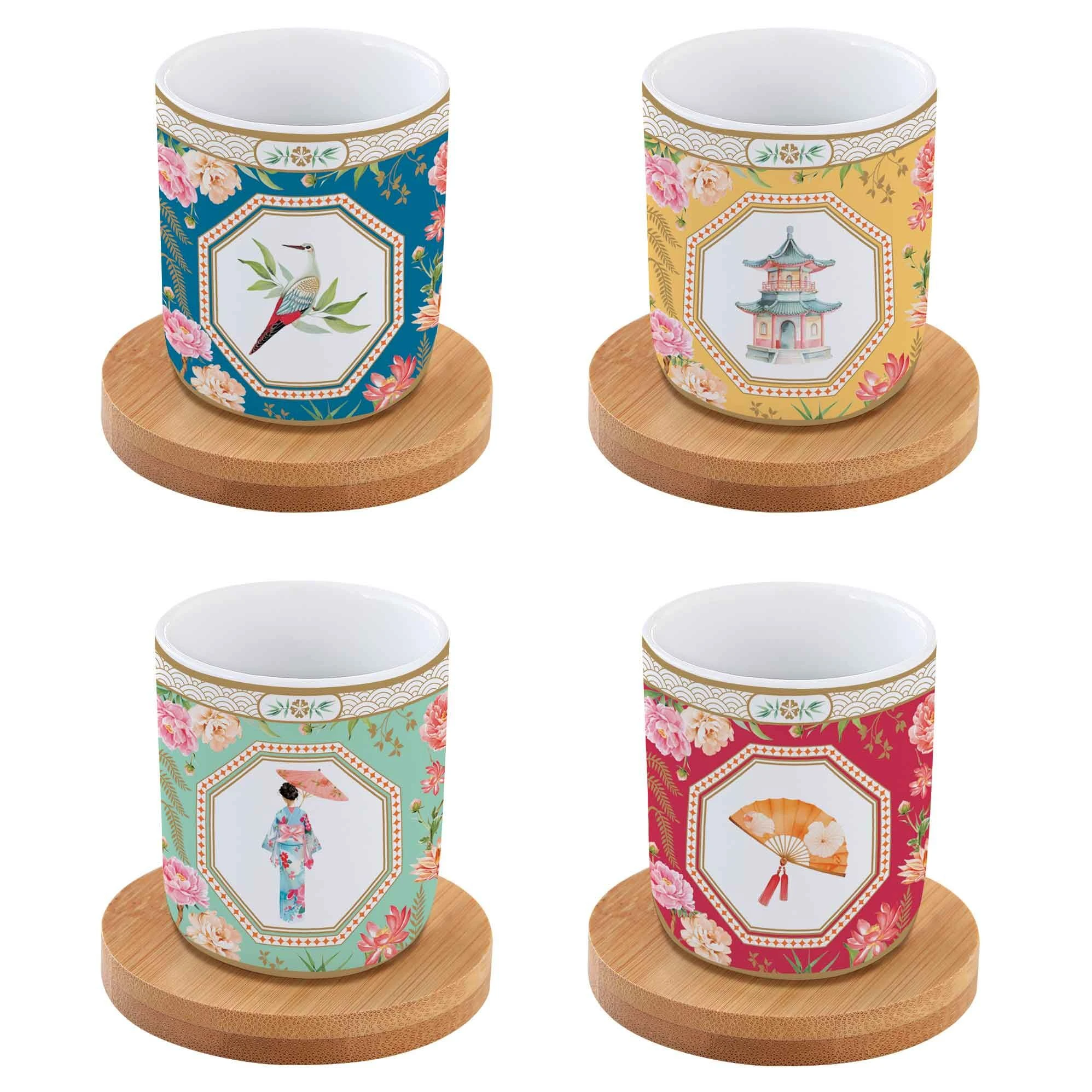 Easy Life/Nuova R2S, zestaw: 4 czarki 110ml + bambusowe podstawki
