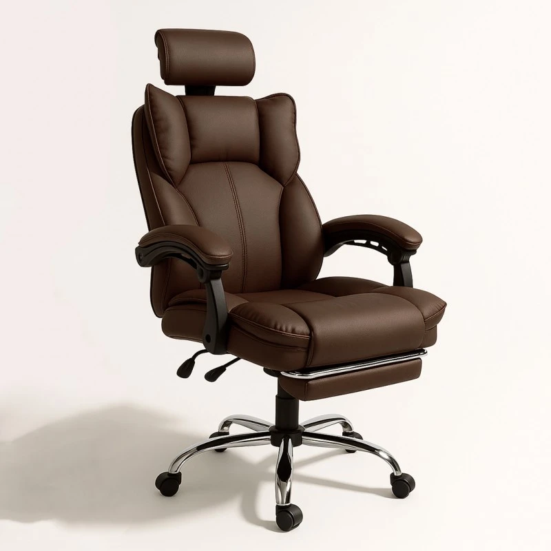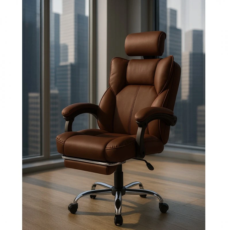 Fotel biurowy obrotowy Directo z podnóżkiem - ecoskóra brązowy ciemny KO49BR