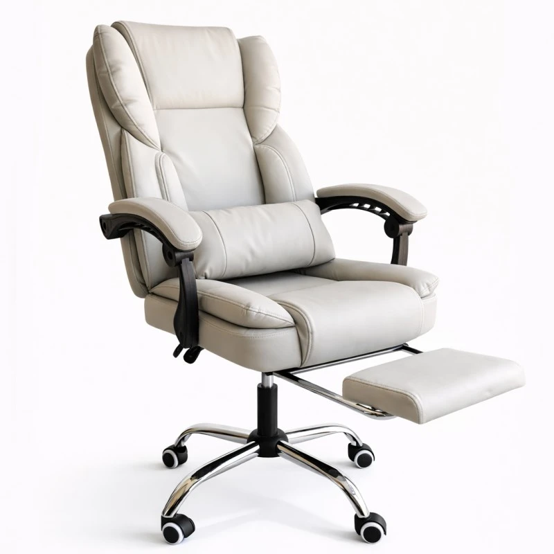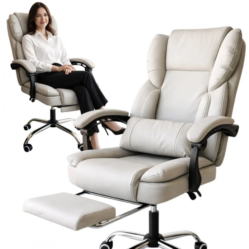 Fotel biurowy obrotowy SKYLINE z podnóżkiem - kremowa ekoskóra KO51K