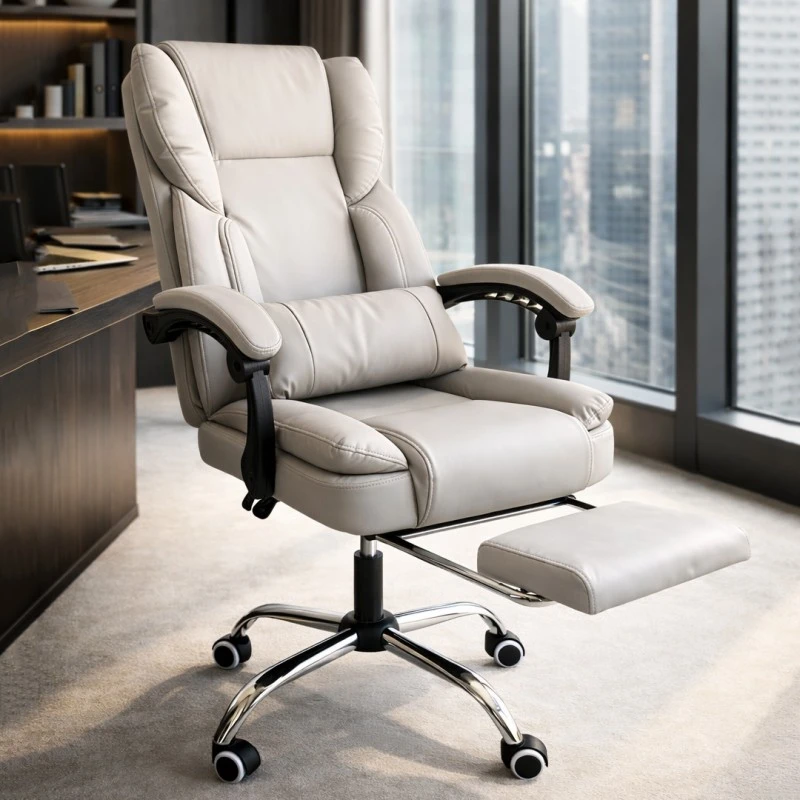 KOMFORTOWY FOTEL BIUROWY Z PODNÓŻKIEM