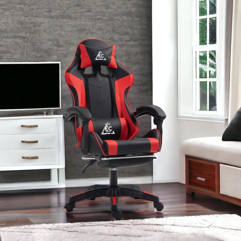 Fotel gamingowy obrotowy z podnóżkiem EC GAMING masażer KO24CZE