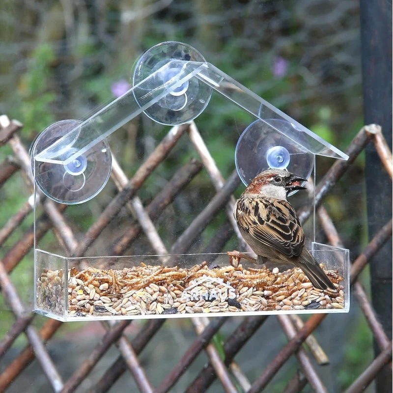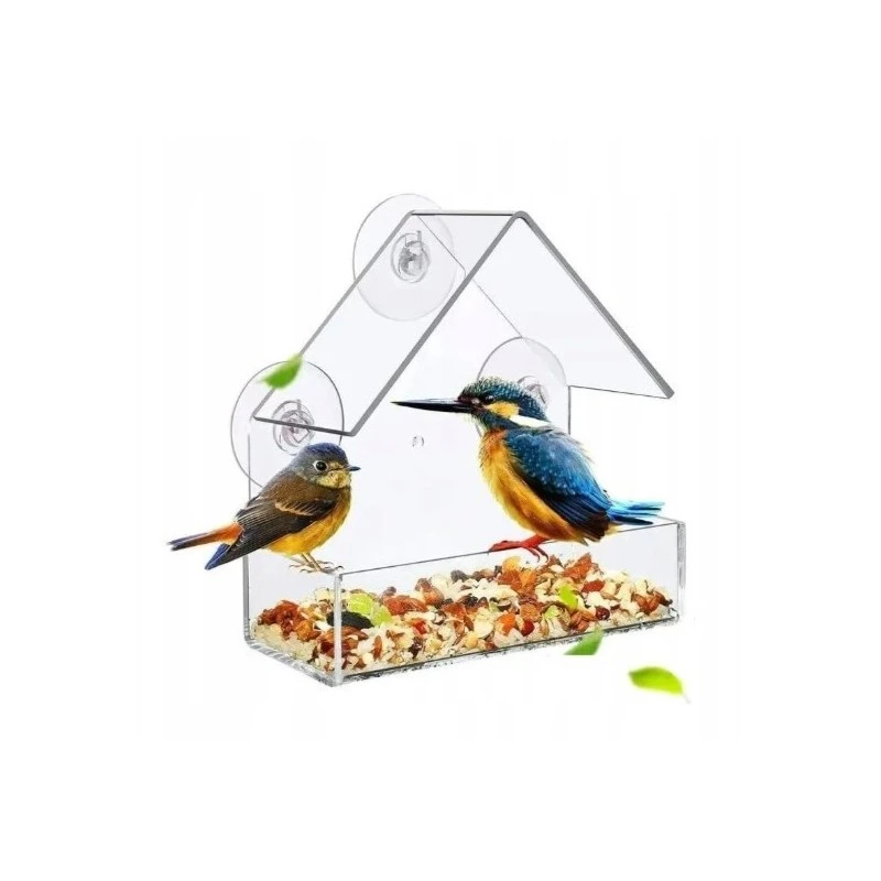 Karmnik, domek dla ptaków z przyssawkami do okna, transparentny PT04