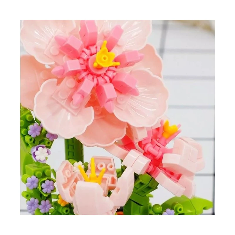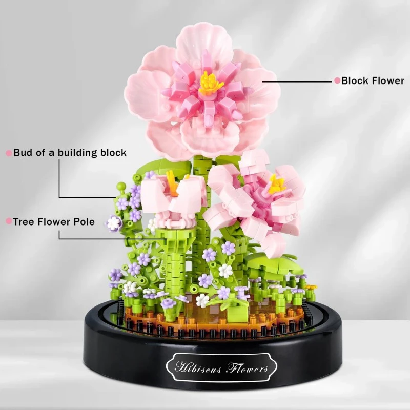 Kwiaty Hibiskus z klocków konstrukcyjnych pod kopułą, róż, 543 el. +12 lat KL04