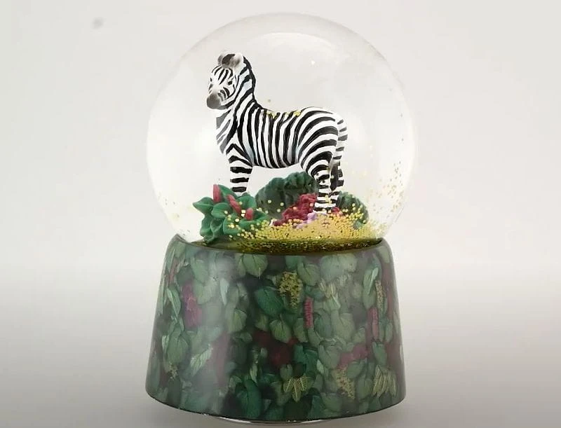 Dla miłośników natury... ładna kula śnieżna ZEBRA z nieruchomym wnętrzem, ale obracającą się całością na stopce i pozytywką mechaniczną firmowana niemiecką marką MMM.