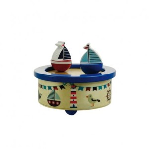 Drewniana pozytywka Tańczące żaglówki obracają się w rytm melodii „Row your boat”.