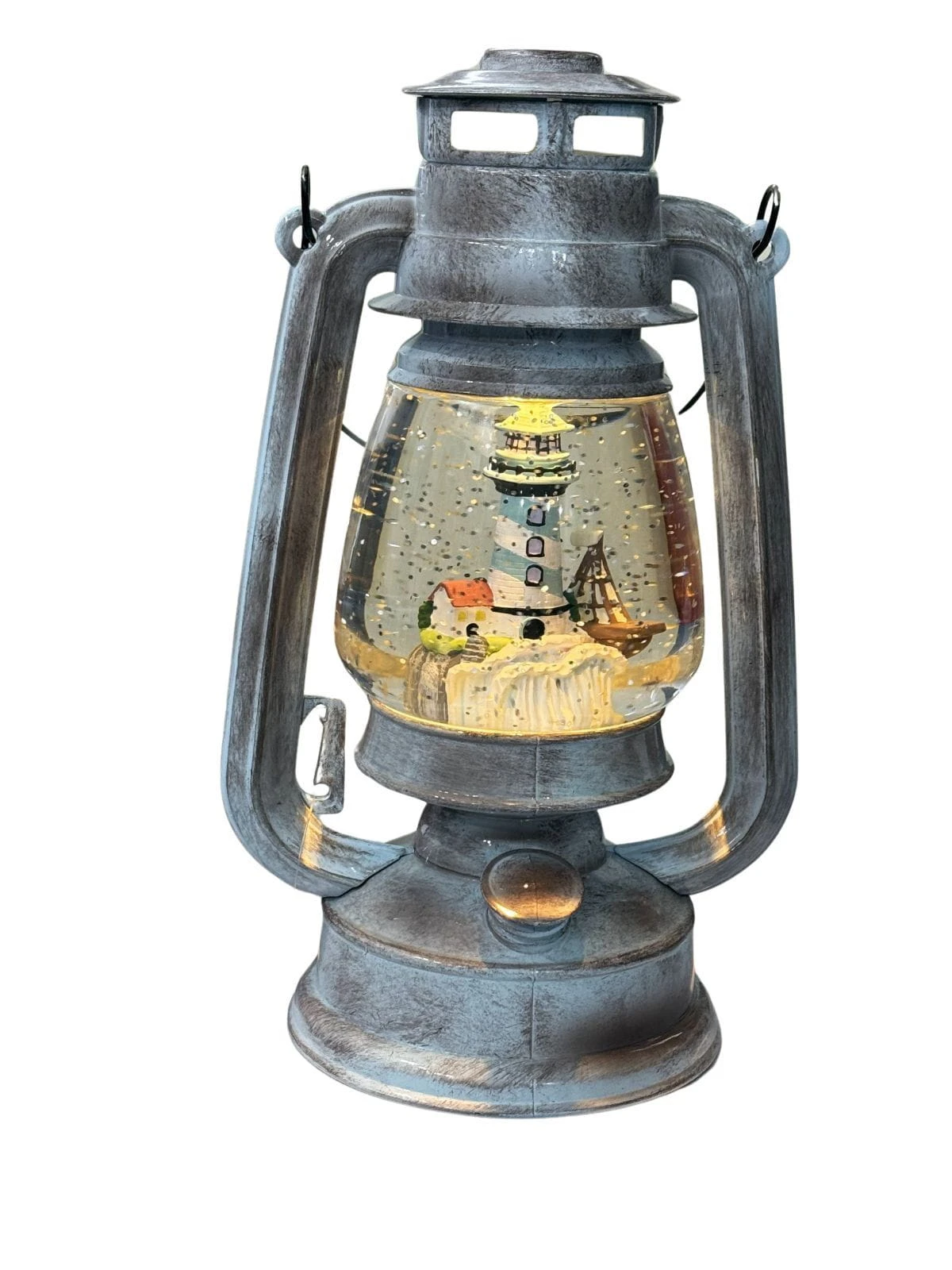 Czy można zamknąć magię morskiej opowieści w jednej latarence? Można – i to z podświetleniem, śnieżnym efektem i... pozytywką! Przed Tobą wyjątkowa kula śnieżna w kształcie stylizowanej latarenki, która zachwyca od pierwszego wejrzenia. Obudowa przypomina przetarte drewno w odcieniach szarości i bieli, a w środku... mała wyspa z latarnią morską i domkiem latarnika oraz żaglówka a w środku... latarnia, domek i żaglówka – wykonane w stylu „nieco naiwnym”, jakby pomalowane z sercem, ale bez linijki – czyli dokładnie tak, jak trzeba, by było przytulnie przywodząc na myśl dziecięce ilustracje z wakacyjnego pamiętnika ;-)