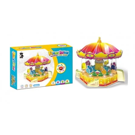 Puzzle z karuzelą, zestaw do montażu z twardego kartonu. Zestaw zapakowany w atrakcyjnym pudełku. Kawałki puzzli są stemplowane i należy je delikatnie wyciskać z arkusza. Dołączona jest szczegółowa instrukcja obsługi. Wszystkie elementy tej trójwymiarowej układanki są składane bez użycia kleju i narzędzi.