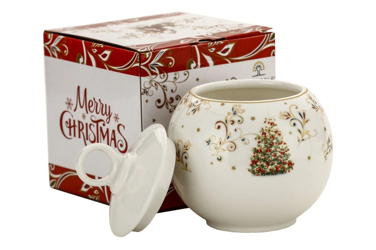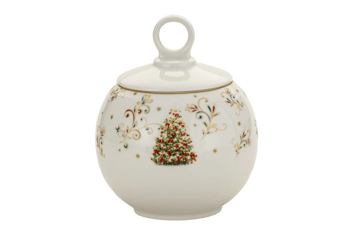 Uniwersalny pojemnik z przykrywką z porcelany o świątecznym motywie marki Magnoble wchodzący w skład limitowanej świątecznej mini-kolekcji Merry Christmas in Magnoble