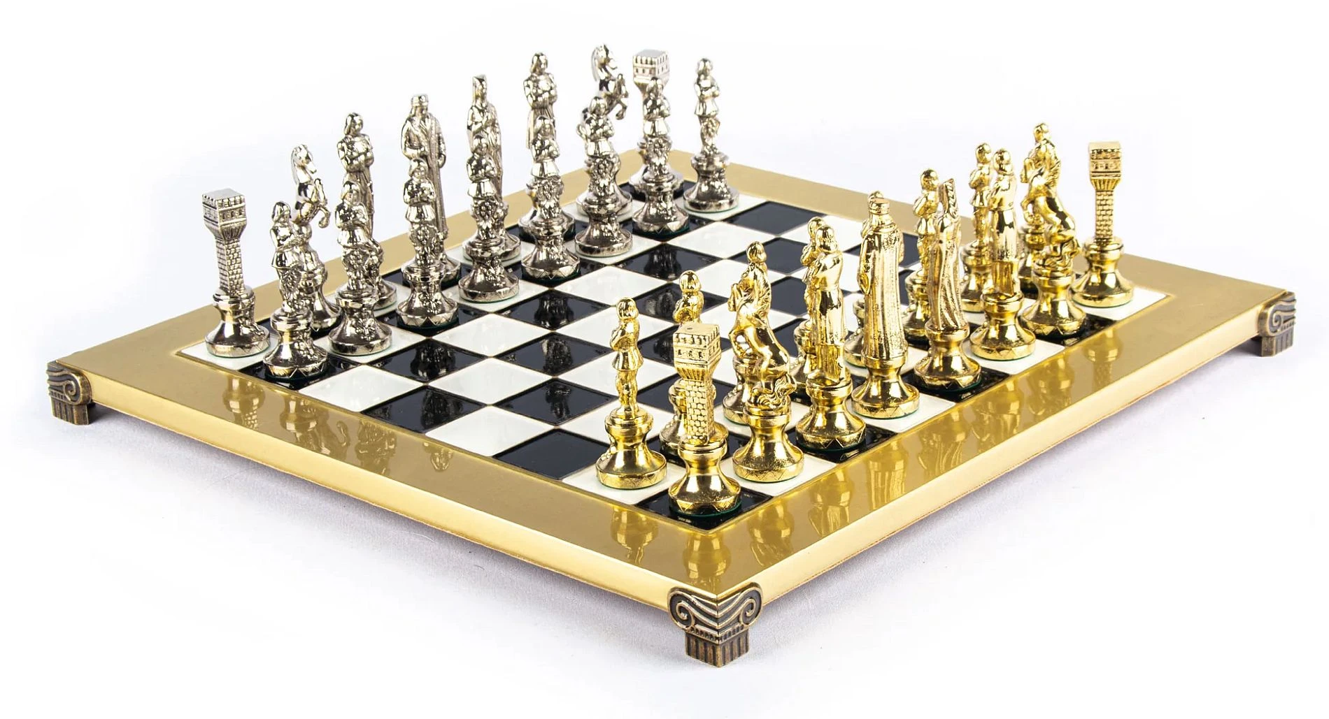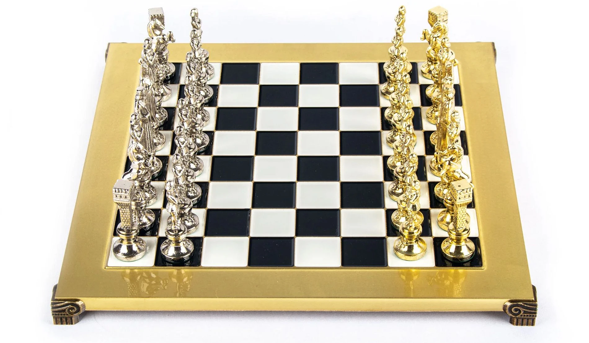 Model Renaissance od Manopoulos przenosi na planszę epokę odrodzenia – moment, w którym Europa ponownie odkryła piękno, wiedzę i wartości starożytnej Grecji. Smukłe, eleganckie figury w złocie i srebrze tworzą kompozycję, która wygląda bardziej jak rzeźba niż gra.