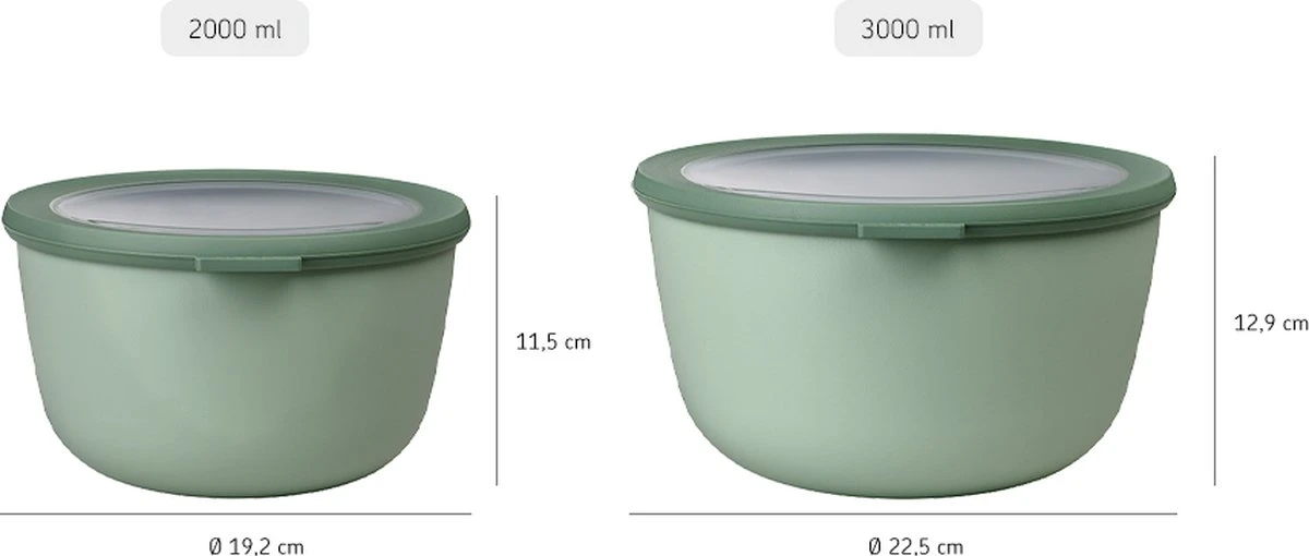 Miski można używać w lodówce, zamrażarce, kuchence mikrofalowej (bez pokrywki) oraz myć w zmywarce. Dzięki funkcjonalnemu designowi układają się jedna w drugą, oszczędzając miejsce w szafce.