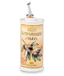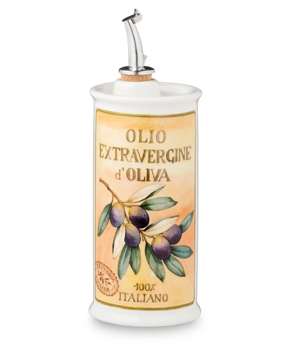 Ceramiczna butelka na oliwę(250ml) z metalowym dziobkiem ułatwiającym nalewanie z kolekcji butelek na olej/oliwę Oliere Del Casale (oliwa z wiejskiego domku) włoskiej, rodzinnej manufaktury Nuova Cer. istniejącego od 1965 roku(pod obecną nazwą od 1992r.) w Umbertide, małej wiosce w sercu zielonej Umbrii :-)