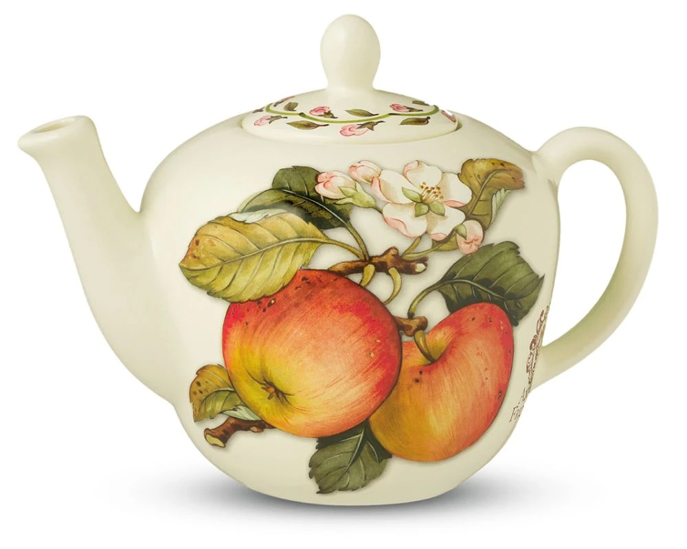Ceramiczny czajnik(1000ml) z kolekcji Antico Frutteto(antyczny sad) charakteryzującej się gładką i połyskującą ceramiką, bardzo delikatnym, wpadającym w biel kolorem ecru oraz niespotykanym, bardzo ładnym i wyraźnym motywem przedstawiającym żółte i czerwone jabłka, zielone i fioletowe owoce figi oraz kwiaty kwitnącej jabłoni - wszystko jak w realu ;-)
