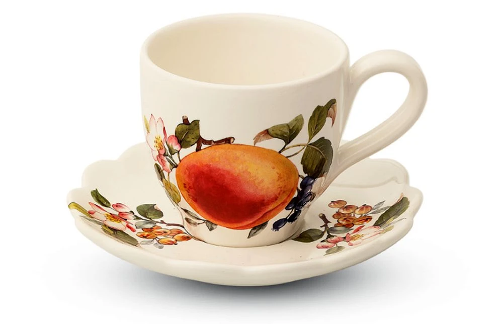 Ceramiczna, uniwersalna filiżanka 250ml ze spodeczkiem z kolekcji Pesche włoskiej manufaktury Nuova Cer. powstałego i istniejącego od 1992r. w Umbertide, małej wiosce w sercu zielonej Umbrii :)