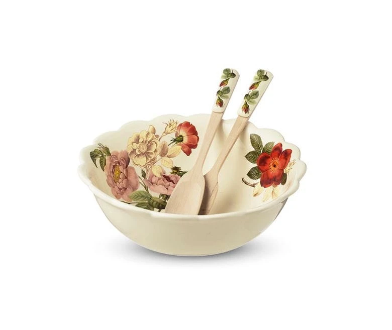 Ceramiczna misa/salaterka z dwoma drewniano-ceramicznymi sztućcami do sałaty z kolekcji Regale Roses (królewskie róże) włoskiej manufaktury Nuova Cer. powstałego i istniejącego od 1965 roku(pod tą nazwą od 1992r.) w Umbertide, małej wiosce w sercu zielonej Umbrii :)