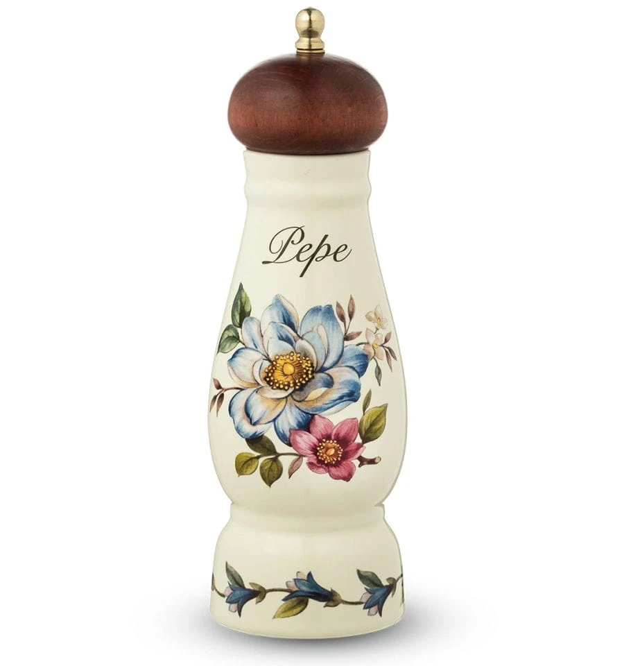 Ceramiczny młynek do pieprzu z drewnianą gałką z kolekcji Petali di Primavera (wiosenne płatki) włoskiej manufaktury Nuova Cer. powstałego i istniejącego od 1992r. w Umbertide, małej wiosce w sercu zielonej Umbrii :)