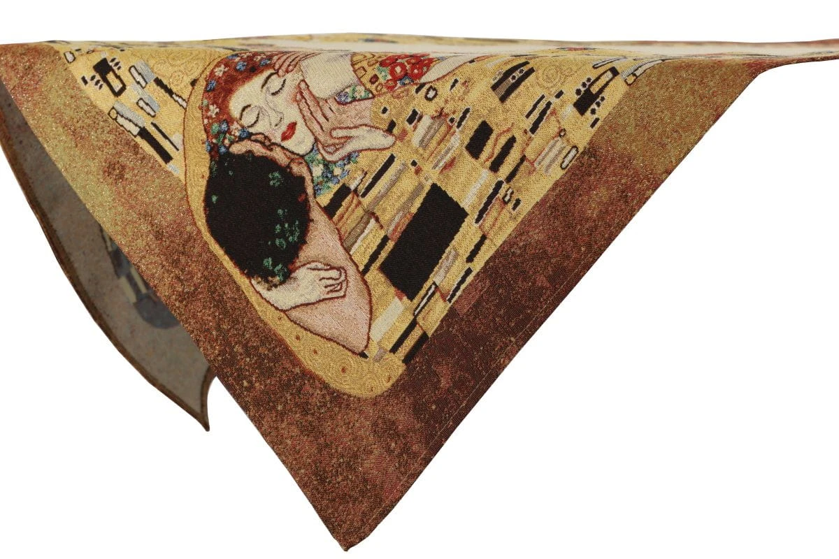 Ten tkany obrus to nie tylko praktyczny element dekoracji stołu, ale także wyjątkowy prezent dla każdego miłośnika twórczości Gustava Klimta i jego słynnego obrazu "The Kiss/Pocałunek"