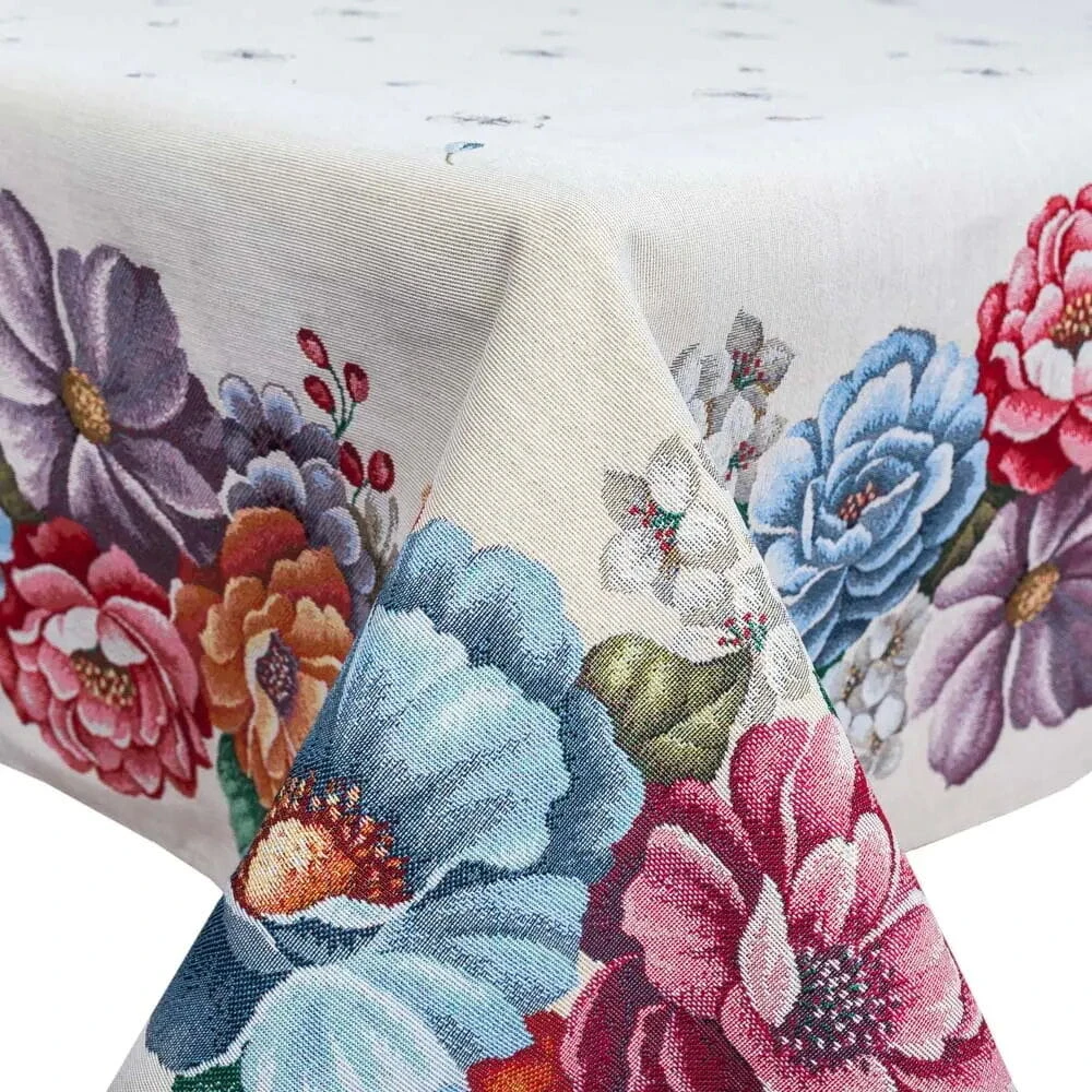 Charakterystyczne cechy dla przedstawionego obrusu wykonanego w Ukrainie, produktu tkanego(to nie nadruk - przypominamy!!!) maszynowo z gobelinowych tkanin sprowadzanych z Wielkiej Brytanii i Hiszpanii: