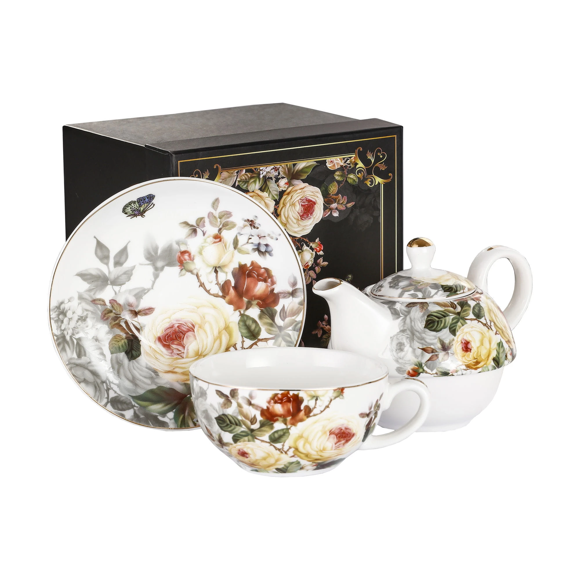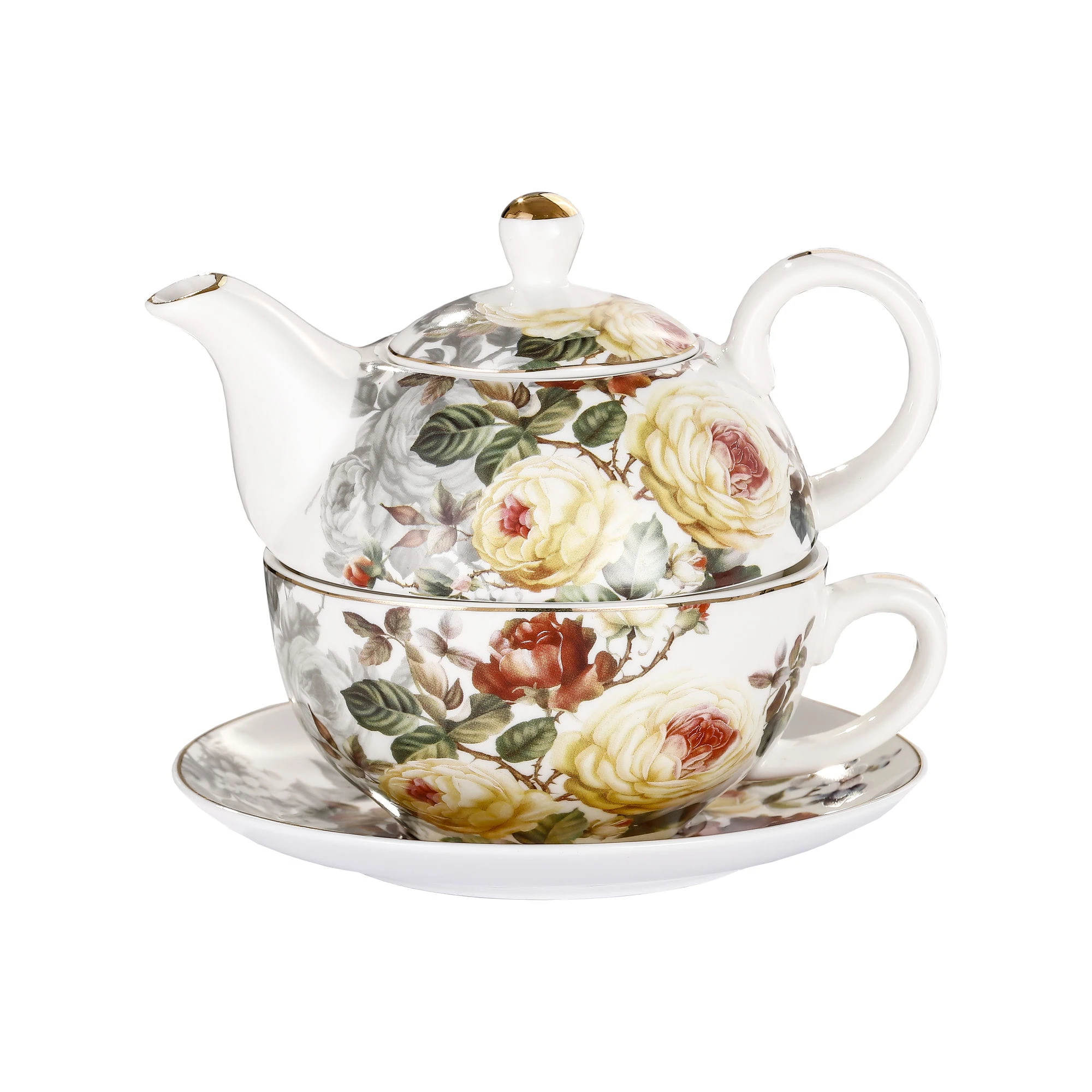 3-elementowy zestaw do herbaty(tzw. tea for one) P4Y - ROSES (róże) składający się z czajniczka oraz filiżanki ze spodkiem.