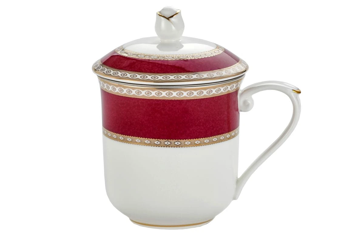 Kubek wraz z przykrywką o oryginalnym/ładnym wizualnie motywie ze zdobieniami wykonanymi 24k złotem.