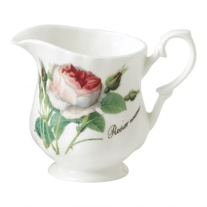 Dzbanuszek na mleko/śmietankę do kawy/herbaty czyli mlecznik z kolekcji Roy Kirkham - Redoute Roses o motywie inspirowanym twórczością Pierre-Josepha Redoute, żyjącego na przełomie XVIII/XIX wieku belgijskiego malarza-botanika, słynącego z akwareli przedstawiających róże.