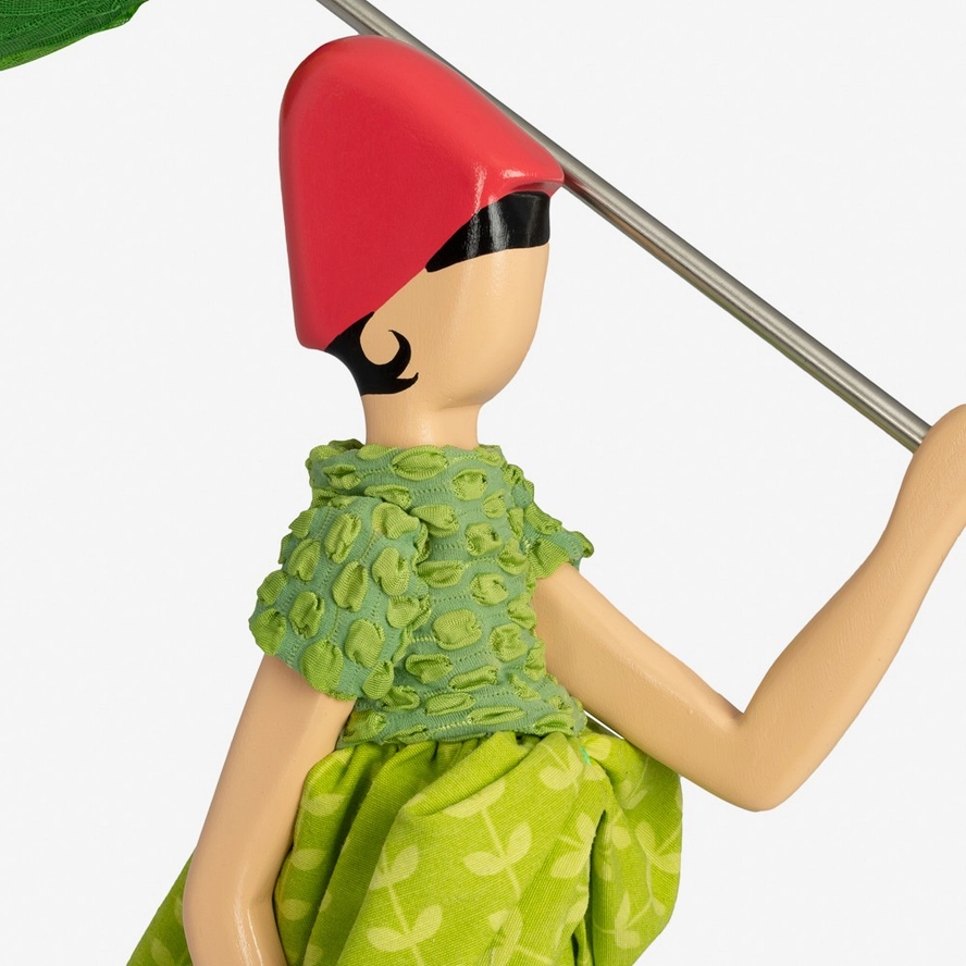 - Wykonana całkowicie ręcznie z drewna i materiałów tekstylnych, malowana farbami ekologicznymi
