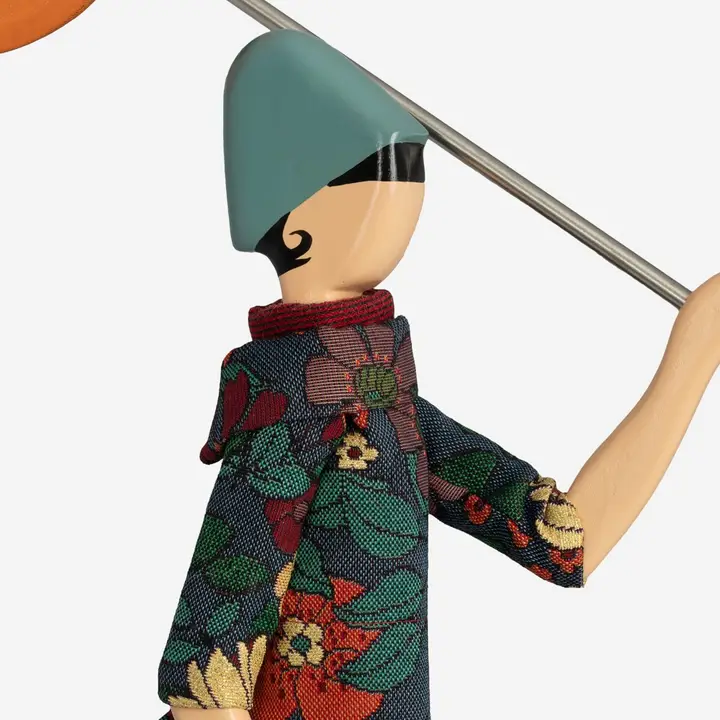 - Wykonana całkowicie ręcznie z drewna i materiałów tekstylnych, malowana farbami ekologicznymi