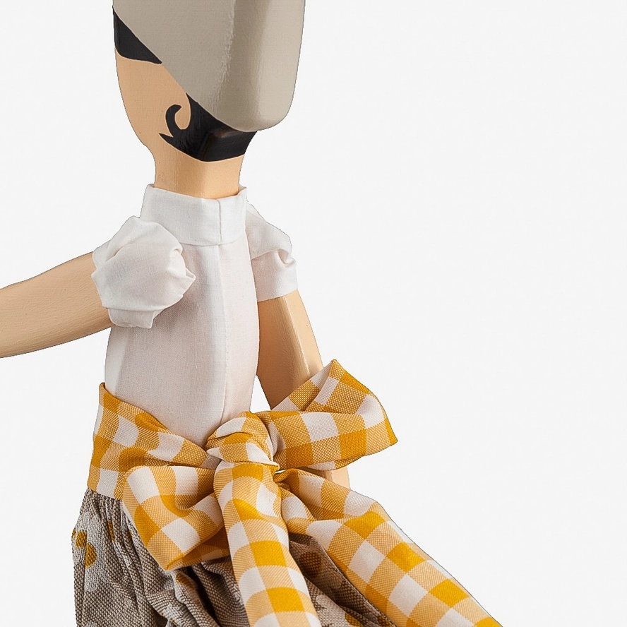 - Wykonana całkowicie ręcznie z drewna i materiałów tekstylnych, malowana farbami ekologicznymi